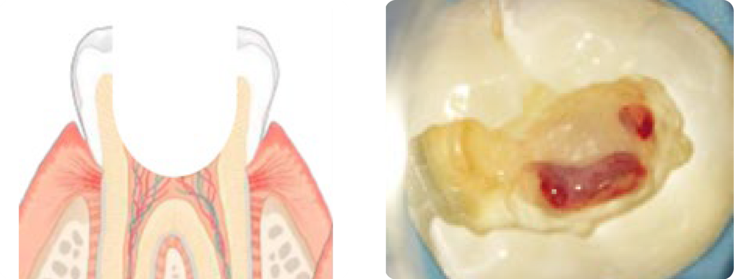 歯髄とは、歯の中心部に存在する組織で、神経や血管を含んでいます。歯の神経は非常に重要な役割をになっています。虫歯が神経まで感染したり、神経が炎症を起こしている場合、歯の神経を抜く、根管治療が必要となります。
