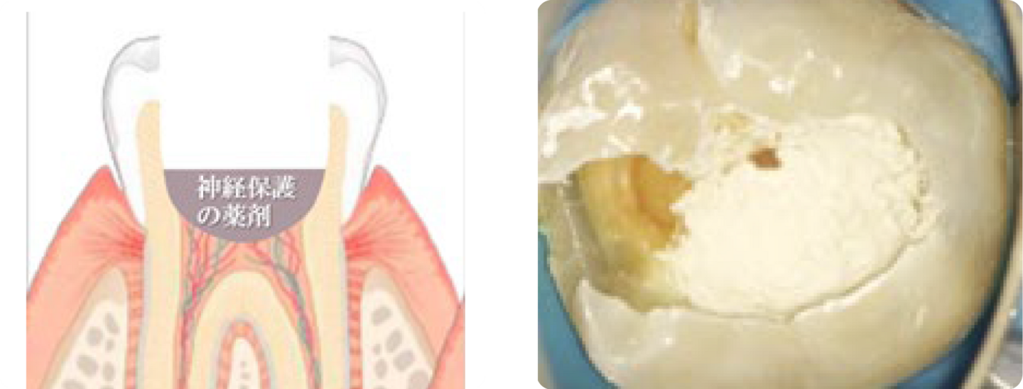 虫歯が歯髄まで感染していた場合、一般的な歯科医院では根管治療が行われ、歯髄を失うこととなります。当院では、虫歯が歯髄まで感染していても、歯髄を保存する治療が可能です。歯髄保存療法を行うにあたり、「歯科用顕微鏡」や「MTAセメント」といった専門的な設備や知識・技術が必要不可欠です。